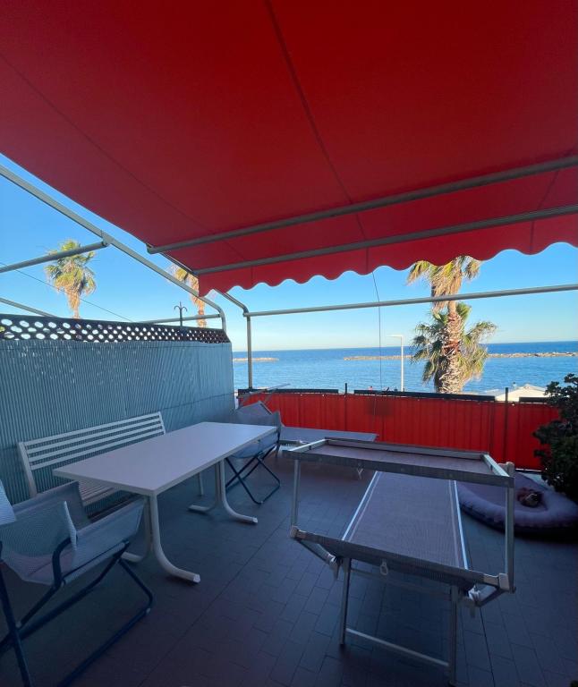La terrazza, a cui si accede dal soggiorno mediate ampia porta finestra è arredata con tavolo