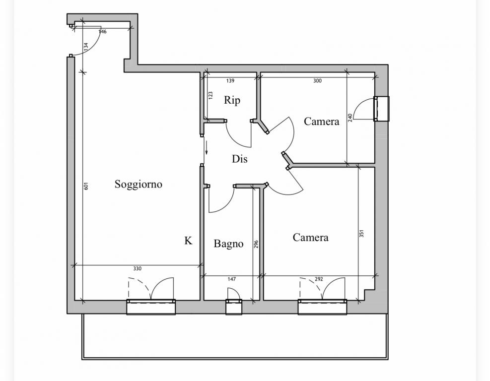Trilocale con living, due camere da letto,bagno, balcone, posto auto