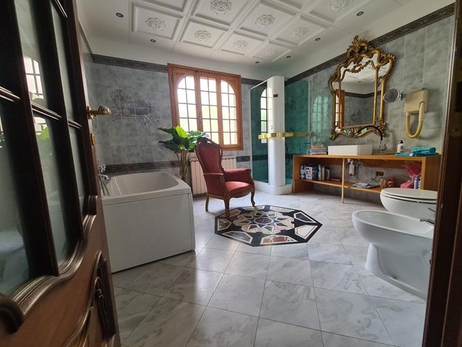 La sala da bagno è dotata sia di doccia sia di vasca da bagno ed è organizzata per la cromoterapia.