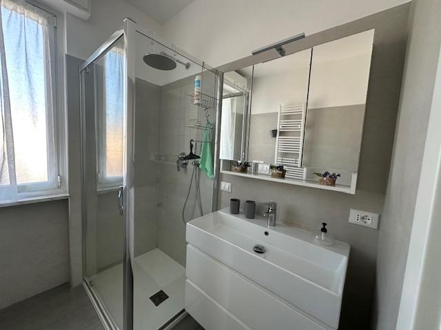 Trilocale appena ristrutturato arredato 4 piano con ascensore, fronte mare,due balconi, composto da corridoio,bagno con doccia appena rinnovato, camera da letto matrimoniale e cameretta 2 letti. Soggiorno con cucina completa e divano 2 letti.